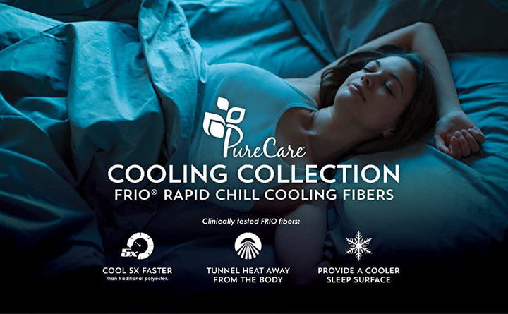 FIND RELIEF FROM SLEEP HEAT // PureCare’s Cooling Collection of Pillows and Protectors are a hybrid of technical textiles and premium materials that fuse wellness with cooling comfort. Flip between the rapid responsive support of vented Talalay latex and the cloud-like comfort of our premium down alternative, paired with cooling relief. Our SoftCell® Chill Cooling pillow is reversible, offering two different comfort options, and features a cooling cover woven from TENCEL™ Lyocell and our exclusive FRíO® rapid chill cooling fibers for lasting cooling relief.
